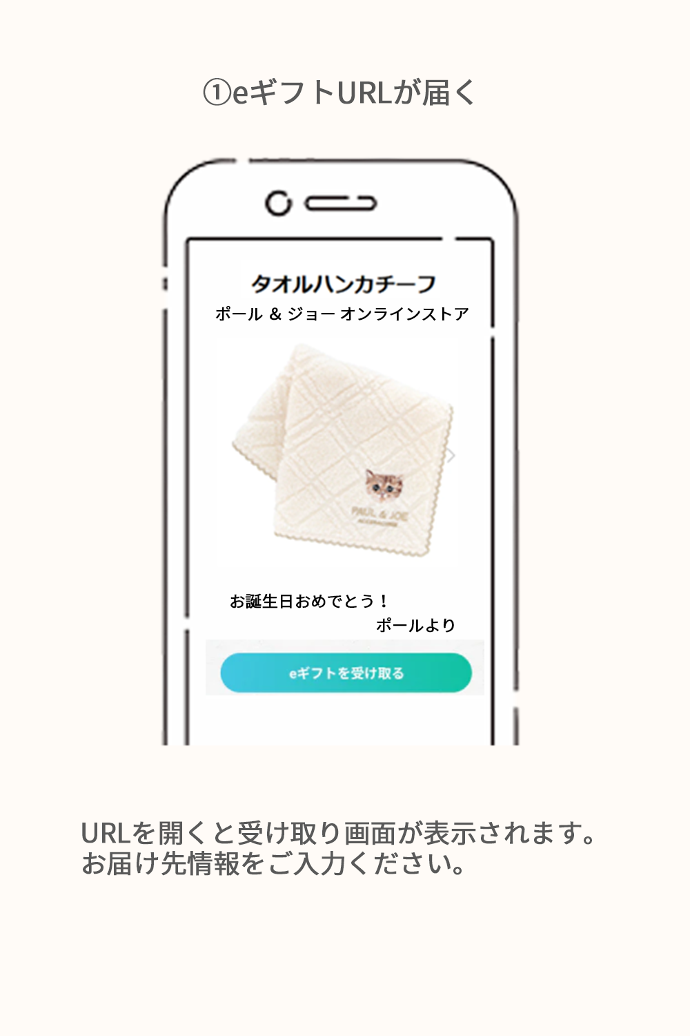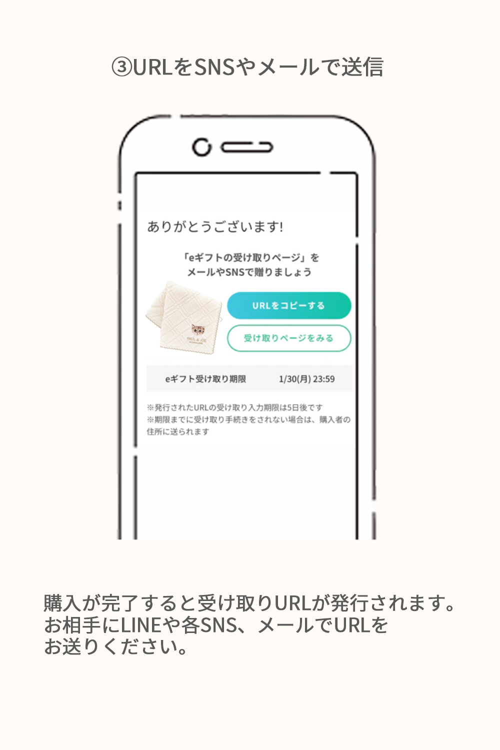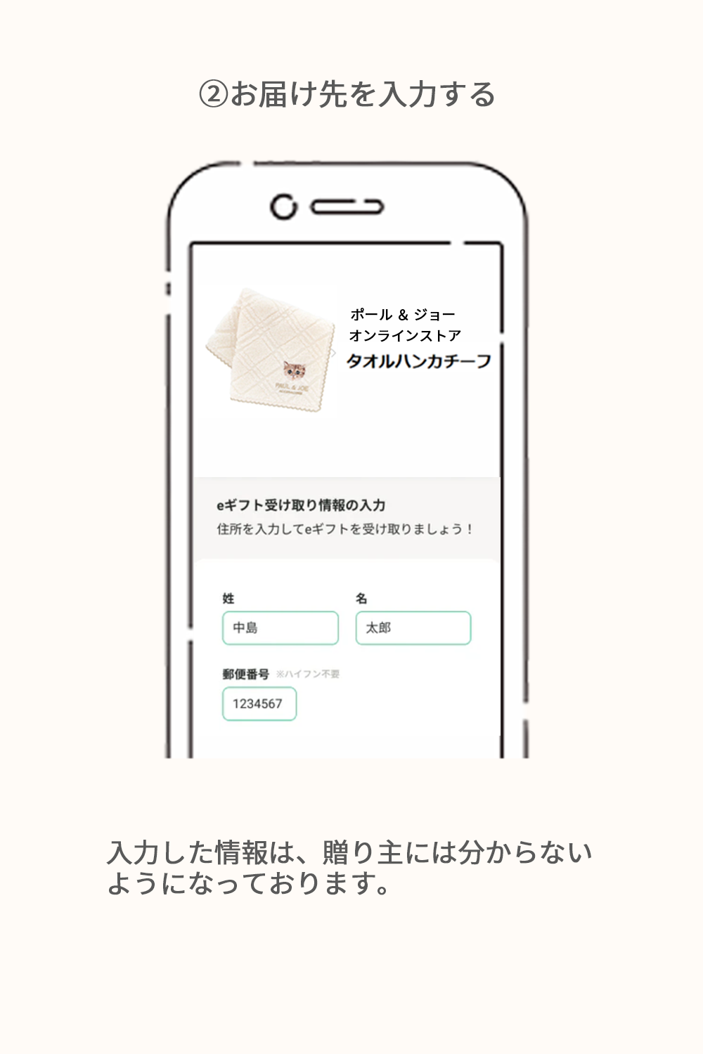 それまでに、お相手へURLを送付するだけでなく、そのURLからお届け先情報をご入力いただくようお願いいたします。