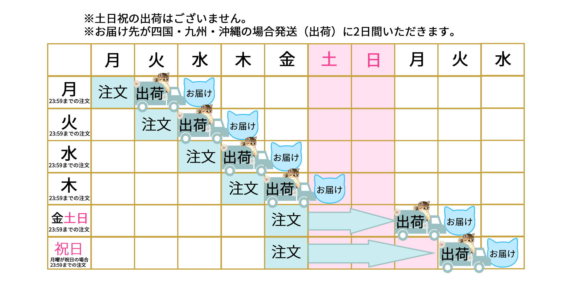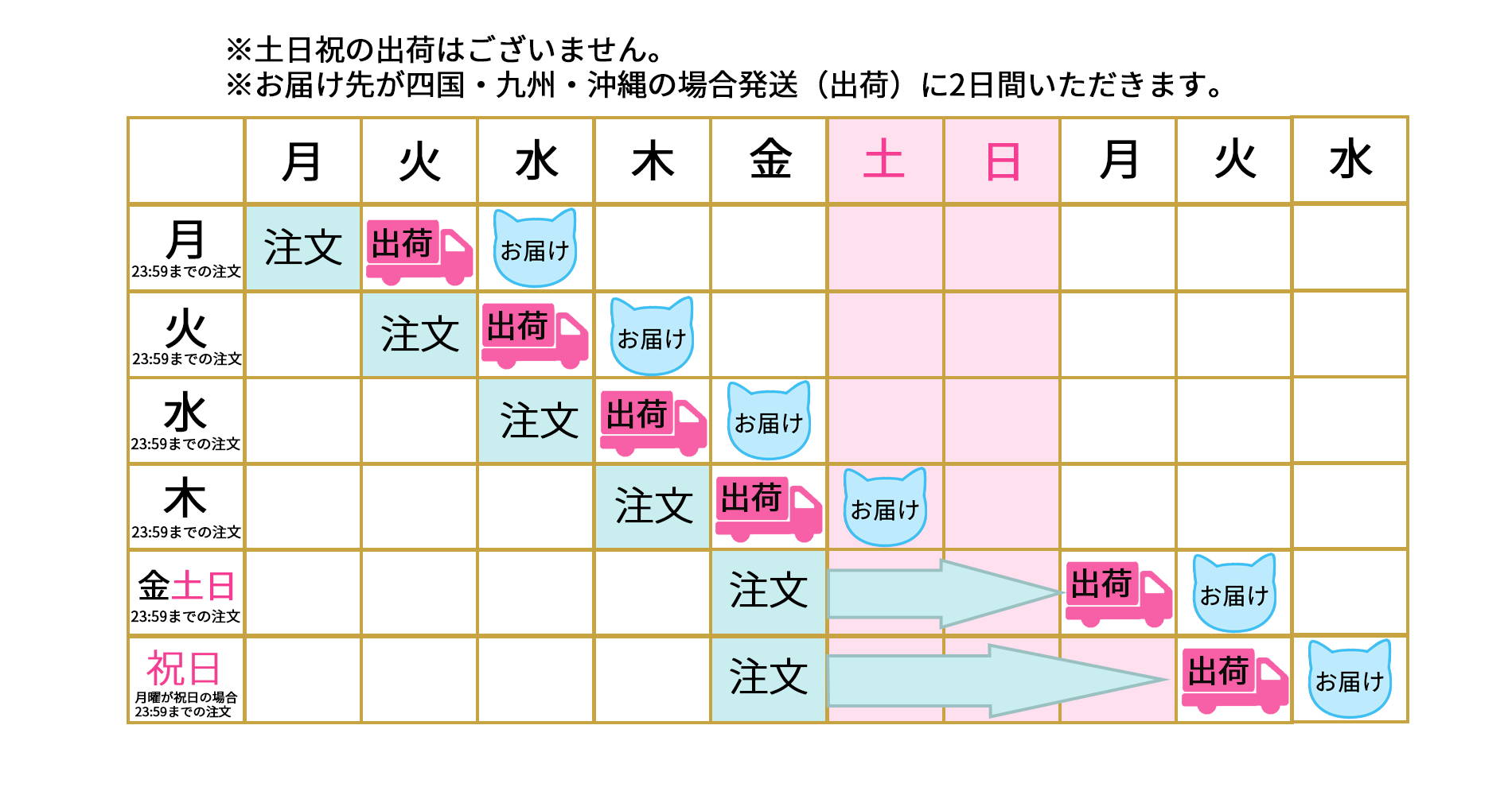金曜注文→月曜発送 ※月曜が祝日なら火曜(平日)発送