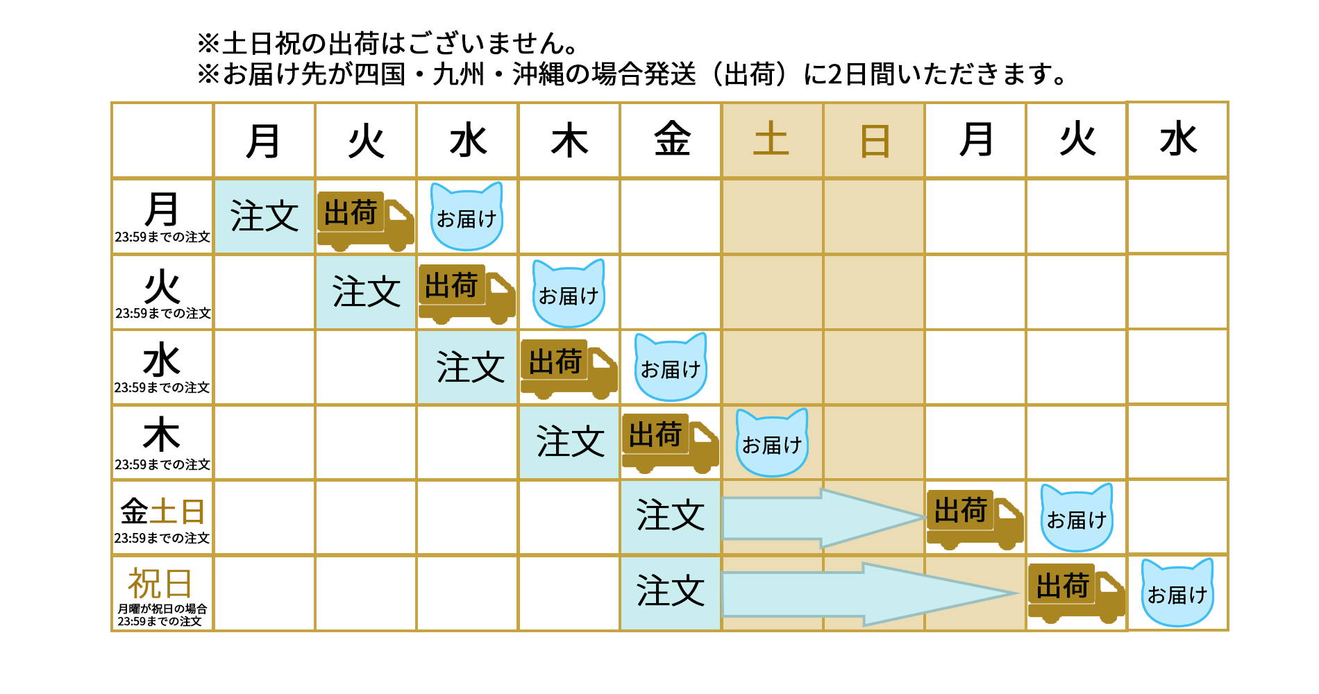 例:火曜注文→水曜(平日)発送